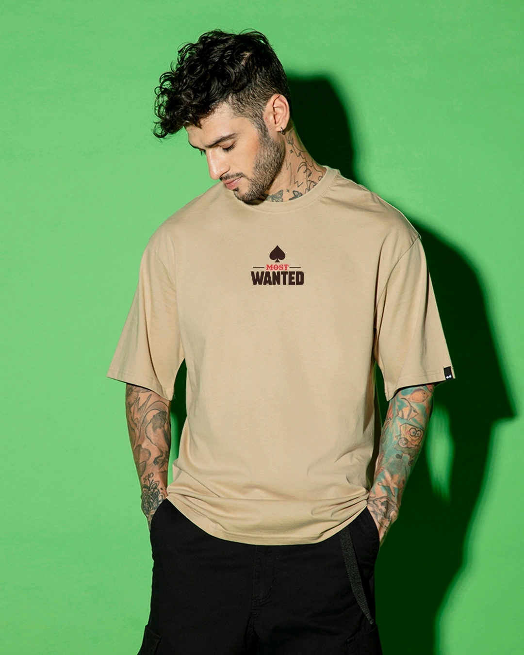 Men’s Brown Most Wanted Graphic Printed Oversized T-shirt