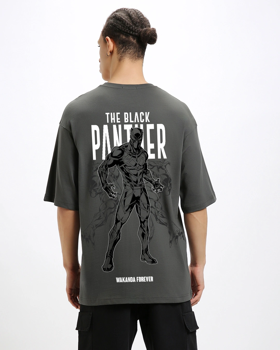 Men’s Grey Wakanda Forever Graphic Printed Oversized T-shirt